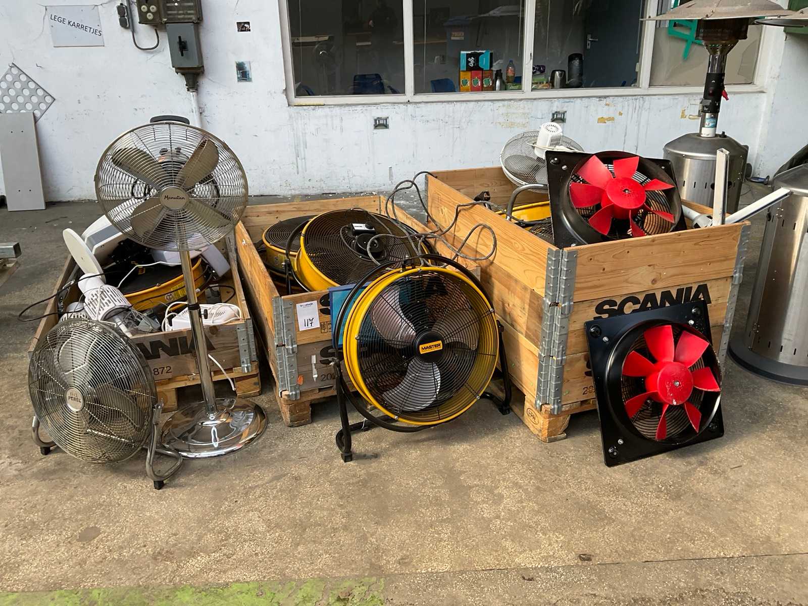 Composto da: (4x) tavoli, (13x) schedari, parti per scaffali. Auction-ID: A1-44726-55