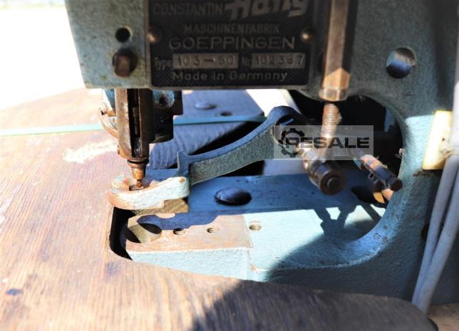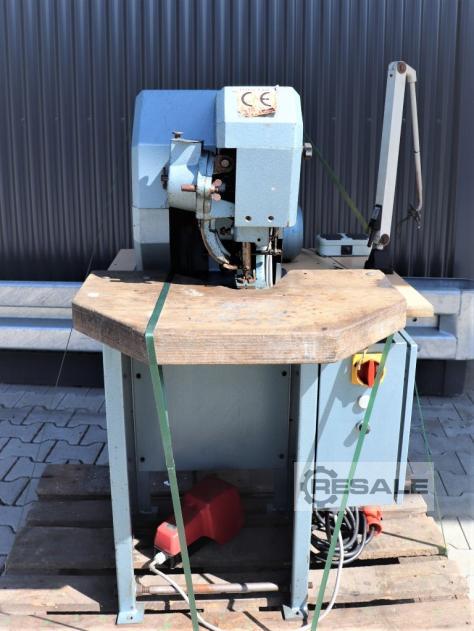 Sono disponibili una punzonatrice a braccio girevole Schön e una occhiellatrice Hang. 1) Punzonatrice a braccio girevole Schön & Cie 8L, anno di fabbricazione: 1973, forza di pressatura: 18t, dimensioni tavola X/Y: 900mm/450mm, larghezza braccio girevole: 350mm, corsa: 60mm, altezza di passaggio: 83mm-183mm, capacità olio: 40l, peso: circa 1200kg. 2) Occhiellatrice Constantin Hang 103 SCD KG, anno di costruzione: 1993, dimensioni della macchina X/Y/Z: circa 600 mm/1250 mm/700 mm, peso: circa 50 kg.