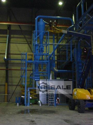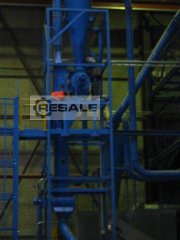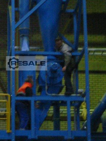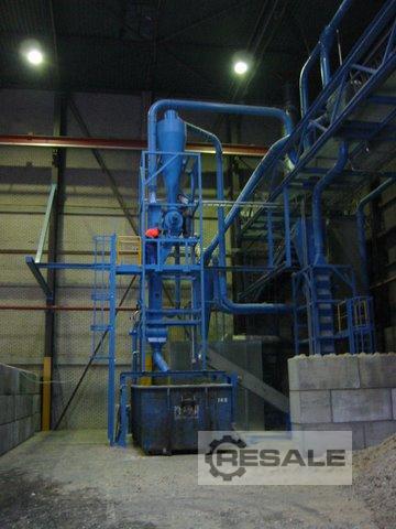 - Marchio: Herbold - Modello: HV-30 - Anno: 2006 - Nessun quadro elettrico. - Composto da: 1. Silo di alimentazione con filtri a maniche. 2. Agglomerato HU30 con motore da 75/90 kW (102/122 CV). 3. Aspiratore da trasporto MFT 35/450 da 7,5 kW (10,2 HP). 4. Frangivento a ciclone e aspirapolvere MFT 30/300 da 4 kW (5,4 CV). 5. Mulino di triturazione. Marca: Herbold, Modello: SML 30/50-53-2, Motore: 11 kW (14,8 CV). 6. Aspiratore da trasporto MFT 18/180 da 1,5 kW (2 HP). 7. Sistema di separazione delle particelle fini con aspiratore da 2,2 kW (3 HP) con ciclone e ritorno delle particelle al silo principale.