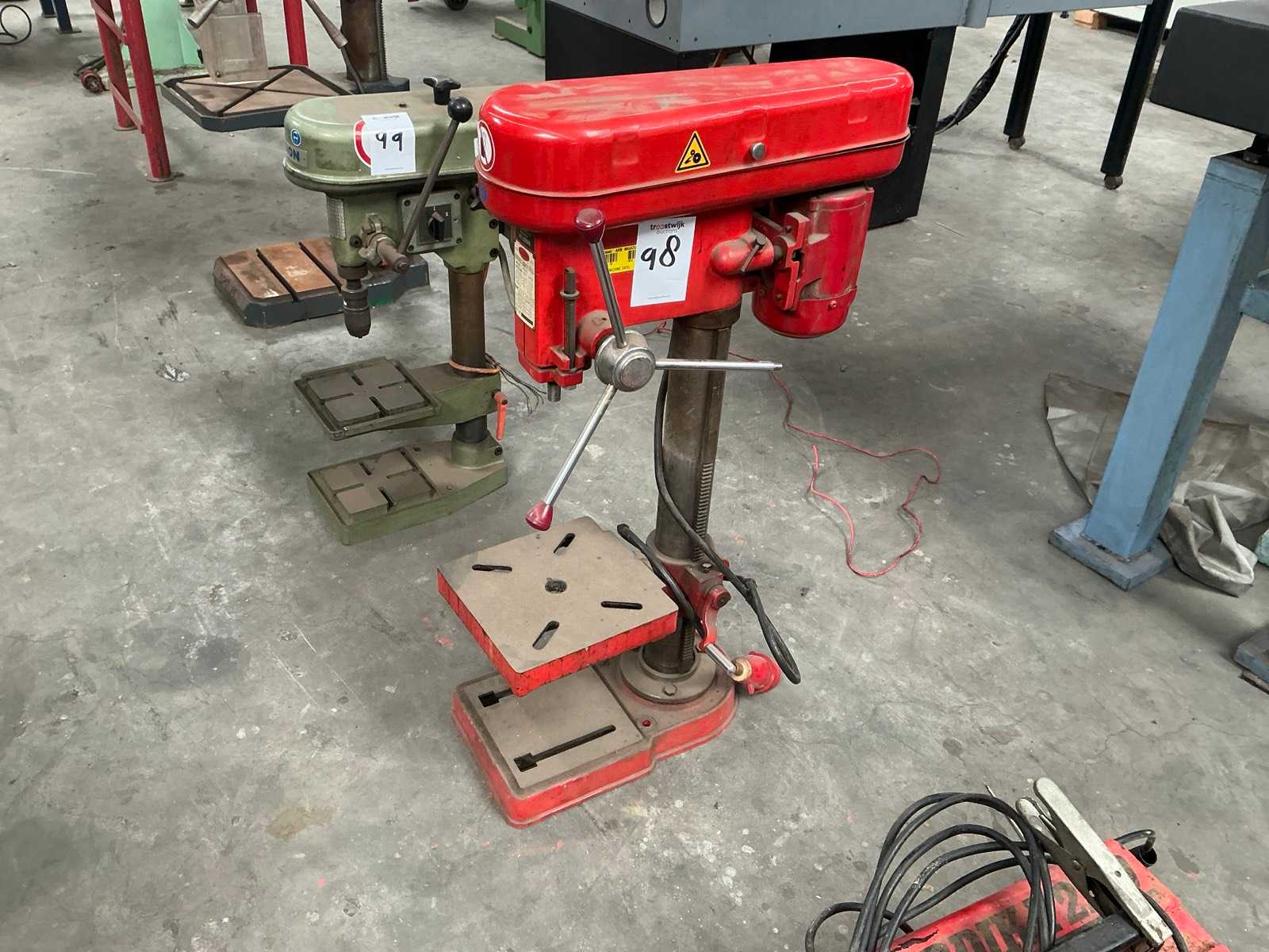 - KNUTH MARK 7 colonne drill, costruita nel 2000 - Robusto design industriale, adatto alla lavorazione dei metalli e all'operazione in officina - Dotato di tavola trasversale per foratura precisa e lavori leggeri di fresatura - Potenza del motore 0,75 kW, connessione 400 V, 3 fasi - Funzionamento manuale, trapano classico a ingranaggi - Inclusi mandrini e accessori mostrati - Condizione: usata, con segni di usura abituali per l'età - Scheggiamento della vernice e lieve corrosione presenti sul tavolo di lavoro - Funzionale - Corpo stabile per macchina, ideale per officina, costruzione o manutenzione metallica - Design compatto con colonna solida e testa di trapano regolabile - Il tavolo incrociato consente un posizionamento esatto del pezzo - Numero di serie: 119652 - Carico e rimozione da parte degli acquirenti Auction-ID: 04E-B4B-1