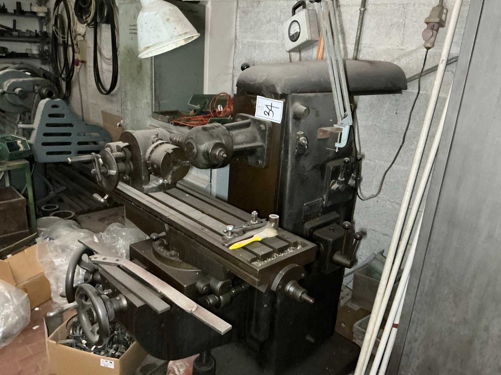 ARNO – Frenatura orizzontale universale con testa verticale Dati generali: Produttore: ARNO Tipo di macchina: Frenatura orizzontale universale con testa verticale Dettagli tecnici: Rastre del mandrino: ISO 40 Potenza del motore principale: 3 – 4 kW Intervallo di velocità del mandrino: circa 45 – 1600 giri/min (passaggi meccanici) Descrizione: Frenatura universale di ARNO dotata sia di fresatura orizzontale che verticale. La macchina è adatta a un'ampia gamma di operazioni di lavorazione, offrendo flessibilità e precisione per applicazioni in officina e industriali. Auction-ID: A7-45351-21