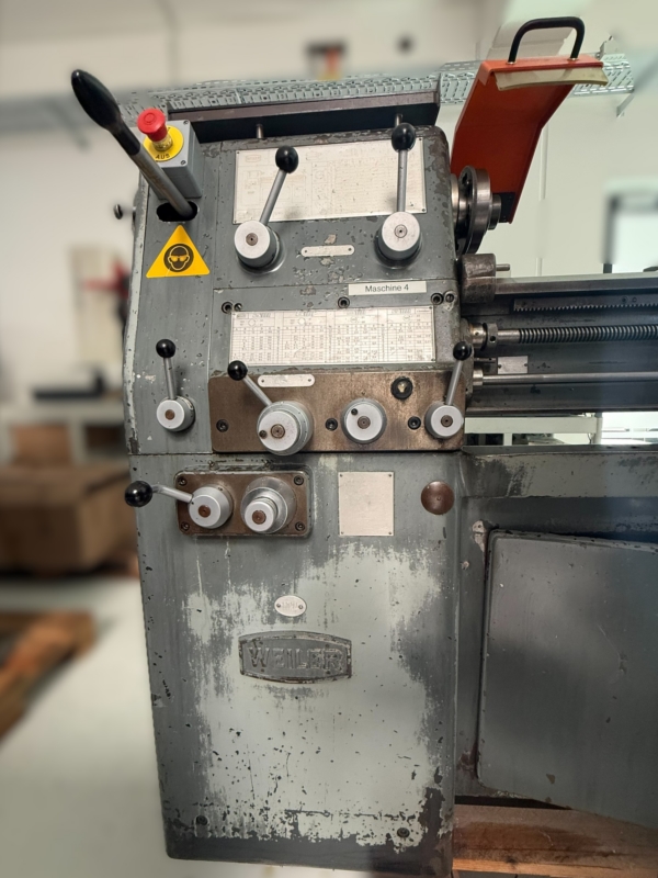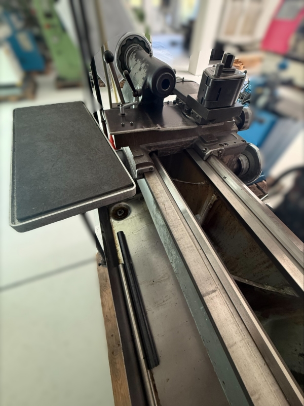 Lalae e varie piccole parti Produttore: Eugen Weisser Tipo: DLNE Anno di costruzione: 1954 Larghezza punta: 2000 mm Larghezza del letto: 380 mm Lunghezza del letto: 3410 mm Dimensioni esterne: 3.850 x 1.020 x 1.135 mm Peso netto: circa 2500 kg velocità massima: 935 rpm max. velocità disco piatto: 710 rpm Il giro turistico è possibile su richiesta. La piena funzionalità delle modalità operative, come la precisione dimensionale, non viene testata.