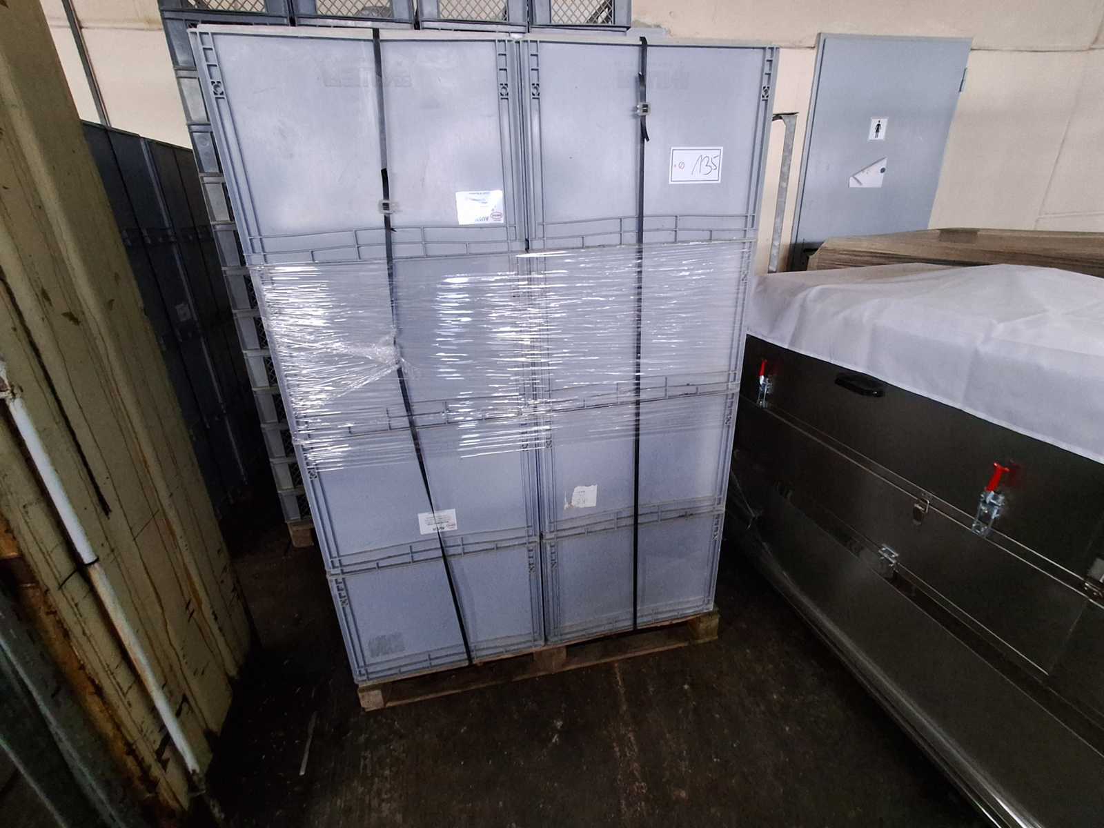 Scatole di stoccaggio AUER per pallet, 16 pezzi su pallet, dimensioni per scatola 600x400x400 mm adatte al cibo - Non pulite! Auction-ID: A7-45677-135