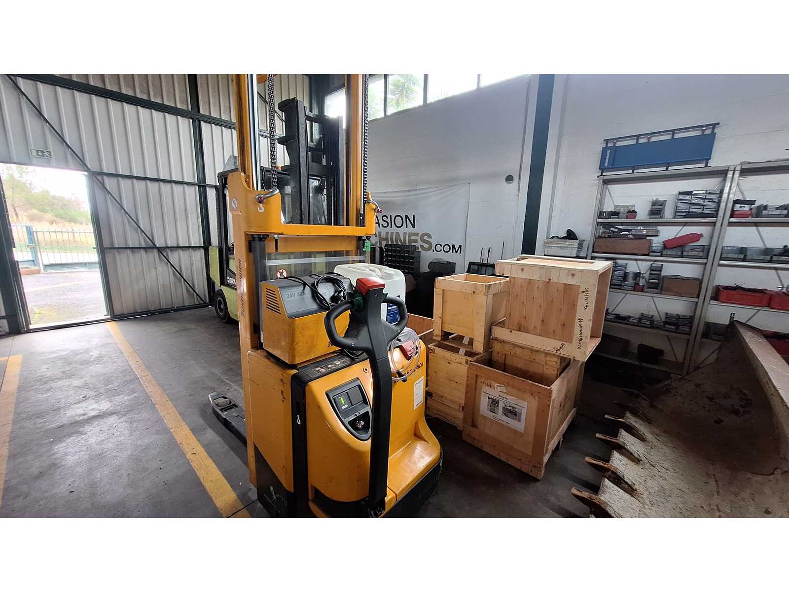 Impilatore elettrico Jungheinrich EJC-Z14 Tipo: Impilatore elettrico Produttore: Jungheinrich Modello: EJC-Z14 Anno di produzione: 2008 Numero di serie: 90296106 Capacità sollevata: 1400 kg Altezza di sollevamento: 3500 mm Distanza al centro di carico: 600 mm Potenza nominale: 1,3 kW Tensione batteria: 24 V Peso macchina senza batteria: 817 kg Peso della batteria: 274/302 kg Include caricabatterie Jungheinrich SLT 100 JH (2010), tipo E230V G 24/40 B-SLT 100, ingresso: 230V/6.9A/50-60Hz, uscita: 24V/40A, capacità batteria: 200-420 Ah Funzionalità non testata Questo articolo viene consegnato caricato su camion. I costi di smontaggio e carico sono specificati come costi aggiuntivi. Auction-ID: A1-45225-43