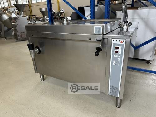 Qui vendiamo un bollitore / pentola a pressione del produttore ELRO, tipo DBGN33-EDS-89.0-0 in ottime condizioni usate e funzionali. Funziona a 400 volt, 23,5 kW, anno di costruzione 2005, capacità di 170 litri, controllo digitale, programmabile, completamente in acciaio inox, presa d'acqua, testata in officina, immediatamente pronta all'uso, dimensioni W/D/H 140/85/100 cm, altri su richiesta.