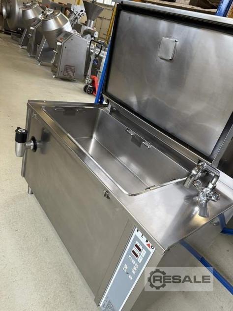 Qui vendiamo un bollitore / pentola a pressione del produttore ELRO, tipo DBGN33-EDS-89.0-0 in ottime condizioni usate e funzionali. Funziona a 400 volt, 23,5 kW, anno di costruzione 2005, capacità di 170 litri, controllo digitale, programmabile, completamente in acciaio inox, presa d'acqua, ...