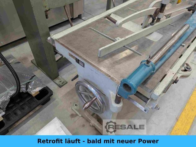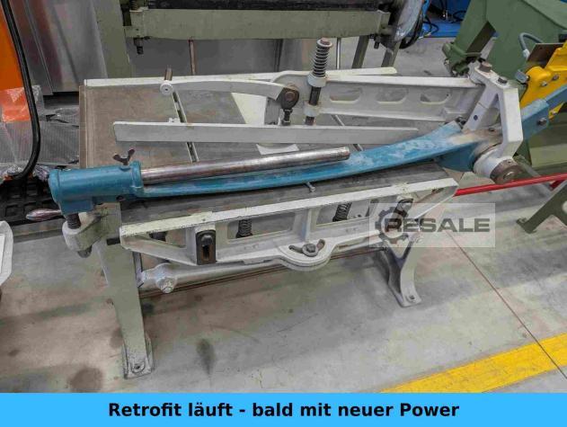 con fermata angolare, regolabile manualmente, con bilancie La macchina viene riparata, controllata, pulita da uno specialista e poi è completamente funzionante. Viene effettuato un test. Lunghezza di lavoro: 1020 mm Spessore lamina acciaio: 2,0 mm Colore: grigio Peso della macchina: 350 kg ...