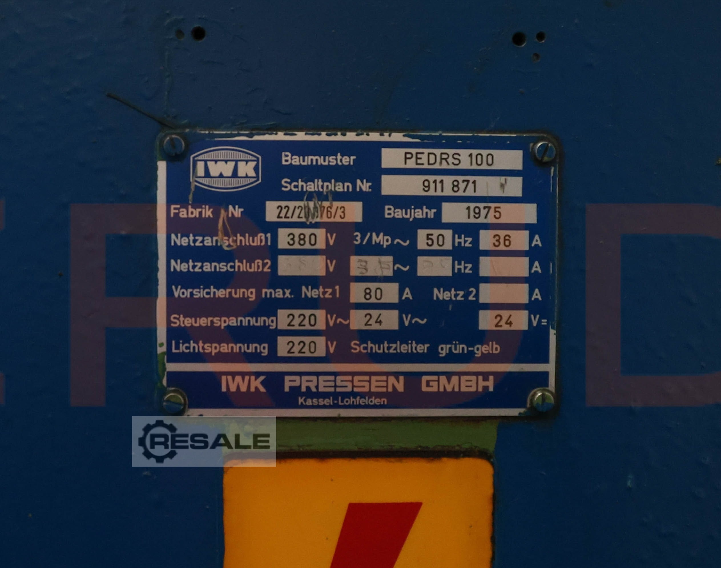 (1975) 100t IWK Eccentric Press Industrial Eccentric Press for High-Capacity Stamping This 100-ton eccentric press from 1975 features a robust electrical configuration designed for versatile industrial manufacturing. Technical Details ‍ Machine Type: Eccentric Press Manufacturer: IWK Model: PEDRS ...