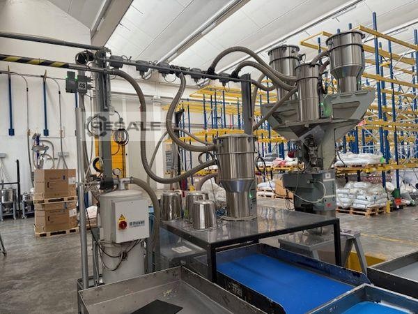 Sistema di dosaggio gravimetrico e miscelazione per plastiche e coloranti con 3 contenitori Dispositivi inclusi nel sistema: Alimentatore gravimetrico con scala e miscelatore, attrezzature ad alta precisione Sistema di controllo: Piovan Easy3 3x C30 a nastro trasportatore a vuoto 1x nastro ...