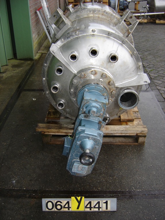 General SKU296W564 MakeLoedige TypeFKM 600D2Z No.5080 Year of construction1969 Mounted on framecheck Main Features MaterialStainless steel Volume600 Ltr. Motor30 KW Specified Features - Powder turbo mixer Powder turbo mixercheck T-arms5 Capacity730 l Useful capacity600 l Trough sizesDia. 780 x 1200 mm Top connectionsDia. 250/300 mm Inspection hatch(2x) 450x380 mm Outlet240 x 180 mm Glands air purgedcheck Motor30 kW, 380/660 volt, 1460 rpm Speed mixing shaft134 rpm With lump breaker2x Motor5,5 kW, 220/380 volt Speed lumpbreaker2910 rpm MaterialStainless steel 1.4301 (304) Information LocationBarneveld Floorspace3,3 x 1,5 m Total height2,5 m Weight2260 kgSpicesPowder turbo mixersCatalysts & fillersFeed additivesOther pharmaceuticsCosmeticsFood additivesSugarAnimal feedOther feedConfectionerySolid pharmaceuticsDyes & pigmentsMinerals & inorganicOther chemical ...