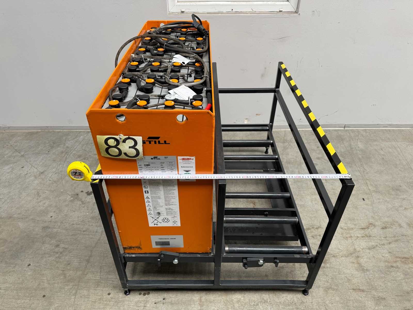 Set batterie completo di telaio intercambiabile del precedente Still Service La batteria è adatta a molti reach truck Still FM-X e Linde R (basta confrontare le dimensioni LxWxH). Prestazioni molto buone misurate a 52,04 V. Caricamento su camion con carrelli elevatori. Auction-ID: A1-45449-1083