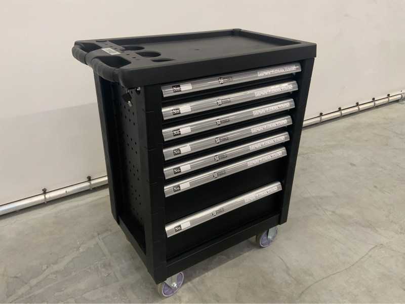 dotata di 274 utensili; 4 ruote, 2 delle quali hanno freno; comitato direttivo; piano di lavoro; 7 cassetti; 1 armadietto chiudibile con scaffale; 2 set di chiavi; inutilizzata in scatola; 2419; Auction-ID: A1-45506-604