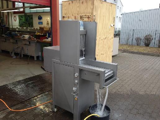 Produttore: Ruhle Tipo: Tagliablocchi congelato Modello: GFR 450 Dimensioni di alimentazione: 450 mm x 330 mm Larghezza del coltello: 450 mm Dimensioni totali: 1700 mm x 700 mm x 1450 mm Tensione: 400 V, 3 fasi, 50 Hz Potenza: 5,5 kW, 16 A