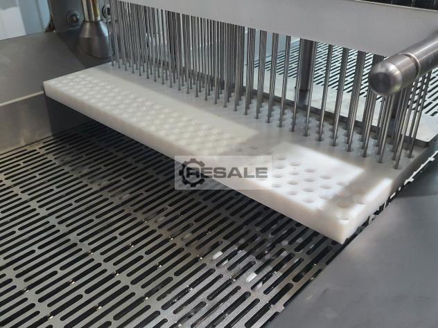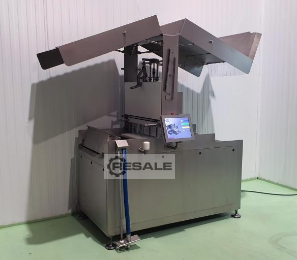 LIQUIDAZIONE dell'iniettore automatico, prodotto da RUHLE modello IR112. Attrezzature usate completamente revisionate, con garanzia e in perfette condizioni. Il sistema di iniezione a 112 aghi rappresenta una nuova costruzione di macchine all'avanguardia che soddisfa tutti i requisiti. Con una superficie di contatto di 700 mm e 60 colpi di iniezione al minuto, l'IR 112 raggiunge prestazioni massime fino a 7.000 kg all'ora. È possibile collegare un detenderizzatore (attrezzatura non disponibile). Misure macchina: coperchi chiusi alti 2240 mm, coperchi aperti alti 2430 mm, lunghi 1850 mm x larghi 1280 mm, larghezza nastro 700 mm. Praticamente nuovo team di riedizione. Recensito e garantito.