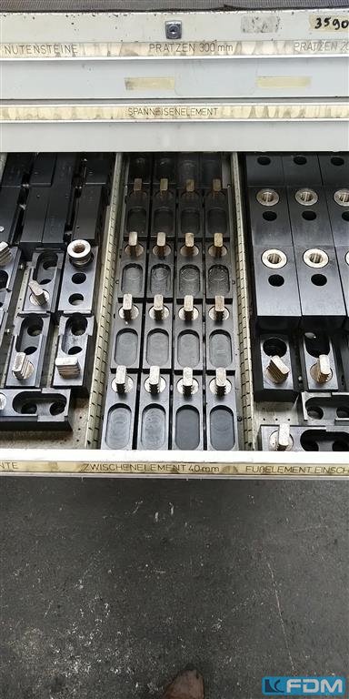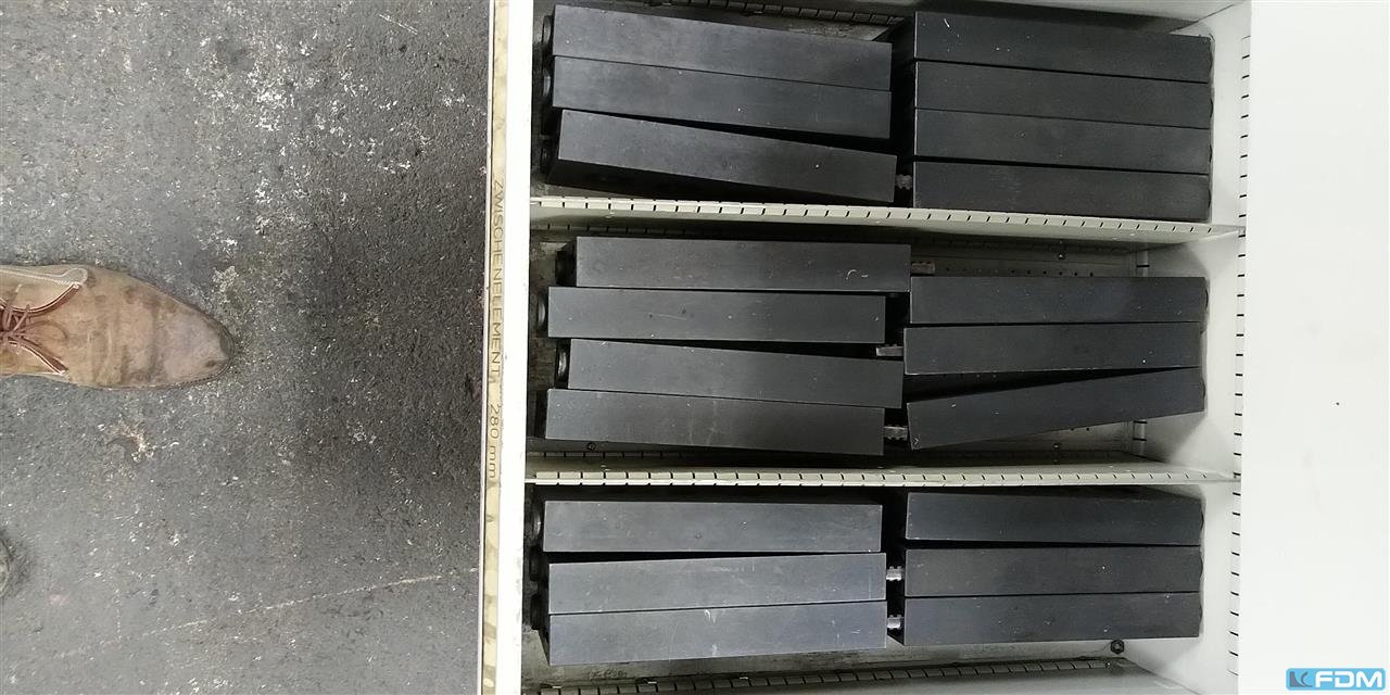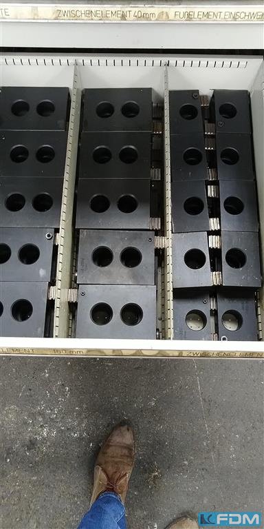 weight:400 kg 8 clamping jaws each ca. 600 x 210 x 170 mm , hole dia. 22 mm, center distance ca. 170 mm was used for clamping rings on a Vertical Turning Machine