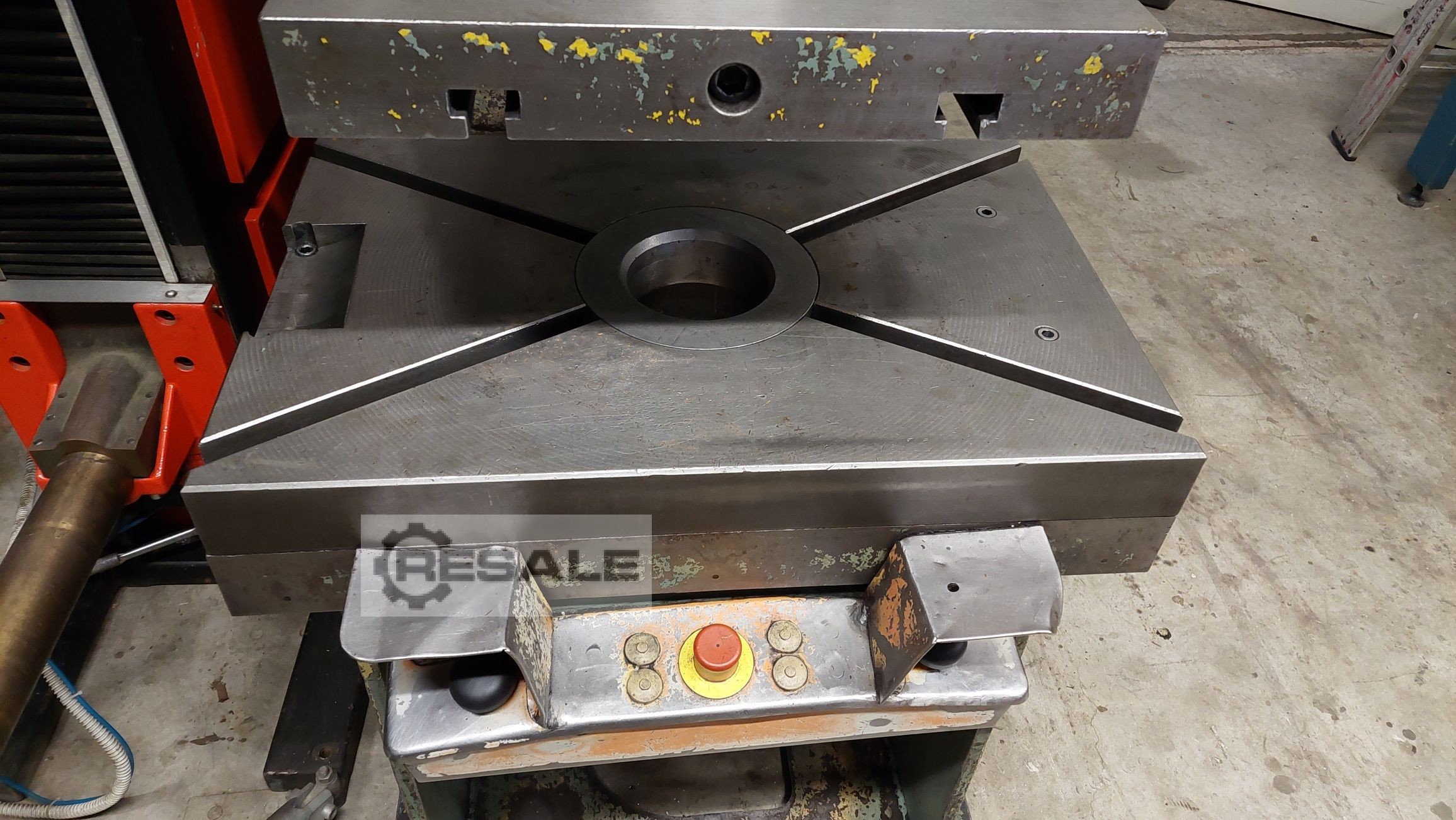 Offerta 25374 Indicazioni: - Forza massima di pressatura 100 t - Corsa massima del pistone ca. 500 millimetri - Velocità di sollevamento 25 mm/sec. - Ritorno 125 mm/min - Altezza di installazione ca. 1000 millimetri - Sporgenza al centro del pistone 380 mm - Superficie di serraggio dello spintore 530 x 400 mm - Perno di serraggio stantuffo 40 mm - Dimensioni del tavolo 750 x 560 mm - Foro tavolo / foro passante nel tavolo 200 mm - Altezza tavolo da pavimento 720 mm - Quantità di riempimento dell'olio ca. 200 litri - Azionamento 400 V / 11 kW - Ingombro ca. L 1150 x A 3250 x P 1850 mm - Peso ca. 4600 kg