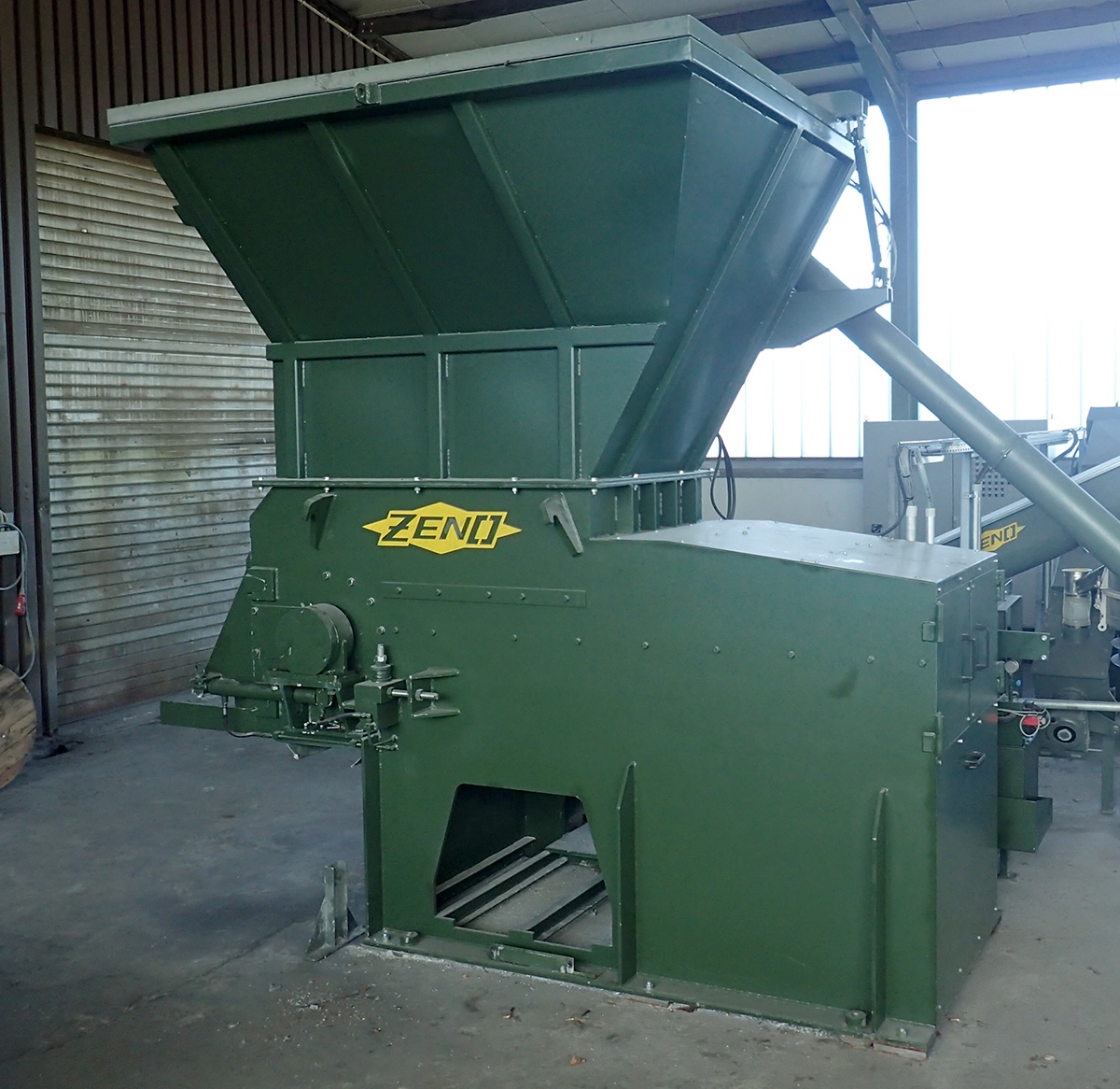 Chopper Zeno Tipo: ZTLL 1150 x 1580 Anno di produzione: 1988 Larghezza del rotore 1150 mm Diametro del rotore 380 mm Velocità del rotore 110 giri/min. Capacità del tramoggia circa 5 m³ Capacità circa 3 m³/h Pavimento idraulico mobile Entrambi i cilindri idraulici per il pavimento mobile sono stati rinnovati nel 2021. Motore 30 kW Peso circa 3500 kg